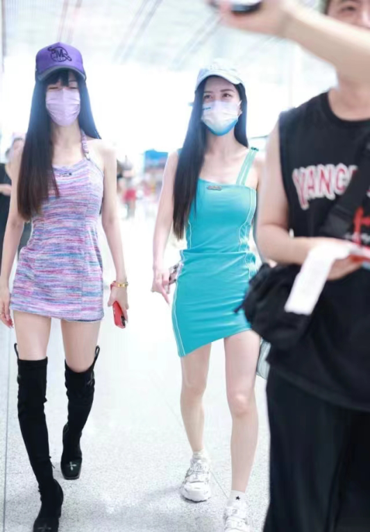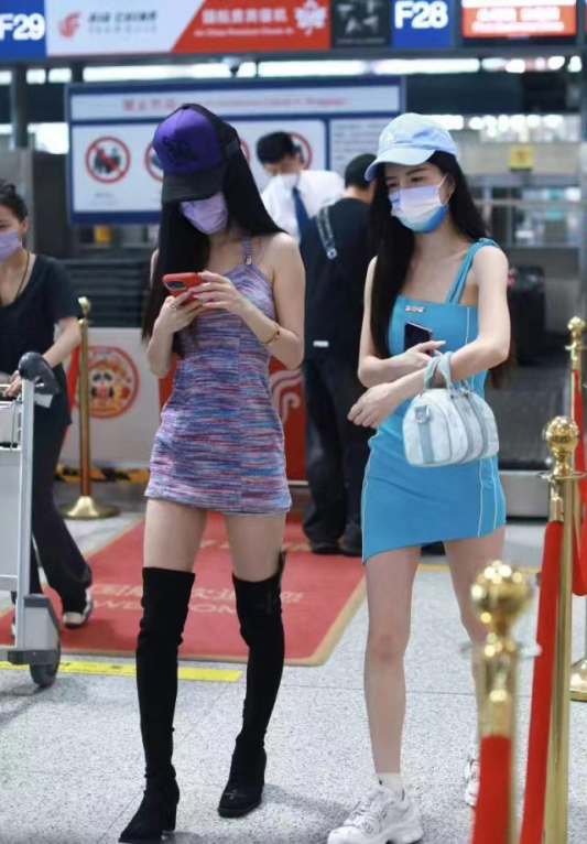 跟着气温的升高,东说念主们的穿搭面料越来越少,发生了根人性的变化,冰寒感吞并了日常活命当中的造型。两个姐妹现身机场,着装齐是以冰寒感为主。紧身项主义短裙将好形体展露无遗,网红感的穿搭,大秀形体。其着实日常活命当中,平常东说念主在着装上不会太条件磋议感,会将舒摈弃摆在第一位,然而由于明星的身份,在公众时局也曾要优先谈判到审好意思性。