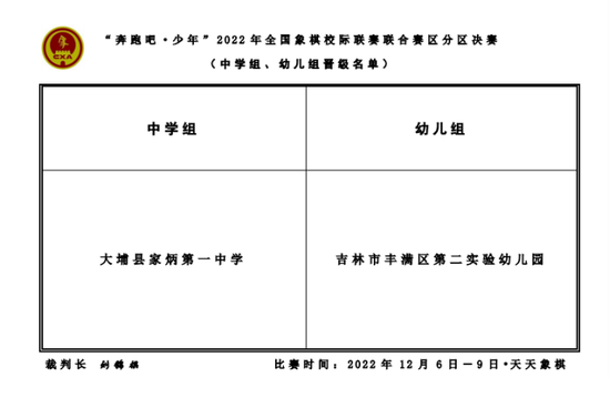 12月8日,“驱驰吧·少年”2022年世界象棋校际联赛结合赛区决赛在“天天象棋”平台收枰,经过2天幼儿赛7轮,中学组、小学组1-3年龄组、4-6年龄组5轮的争夺,三大赛区晋级年度总决赛的名单崭新出炉。