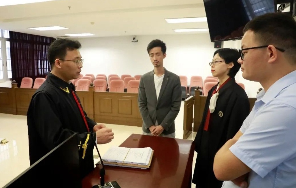 法庭上,越秀法院特邀香港团结员林广健正在向原被告两边讲授专科的交易术语。底本争握不下的诉讼两边,在厘清相干专科术语后,最终达成息争合同并团结了案。
